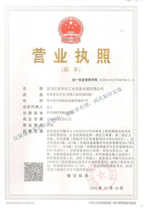 黑龍江省華興工業設備安裝有限公司成立于1996年,歷經多年的創業,現已晉升為一級企業,成為黑龍江省知名民營企業,并已躋身國內安裝企業主流行業。
