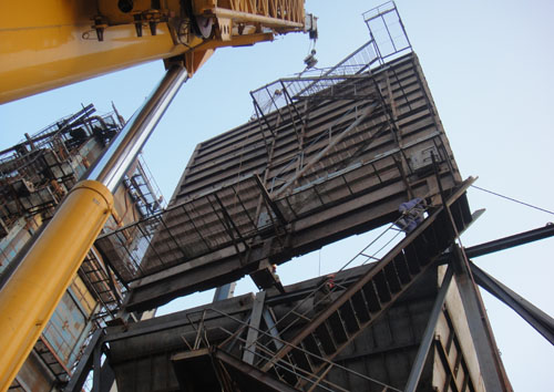 中糧龍江130噸鍋爐鋼架吊裝